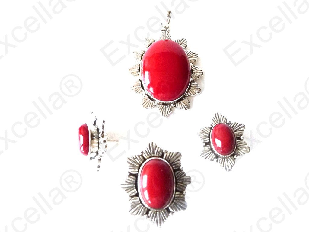 A strkingly beautiful red color set of jewelry from the excella collection to help you augment your style whereever you may go.