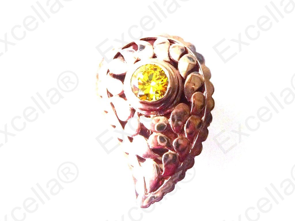 Handcrafted, paisley shaped 925 silver pendant in romantic brown finish with a surrounding border, fitted with an exquisite sparkling yellow stone. Exclusive design reminiscent of lace work which allows a view of subjacent pendant base. A unique design which is bound to be a talking point. Length 4.1 cm, width 2.5 cm
