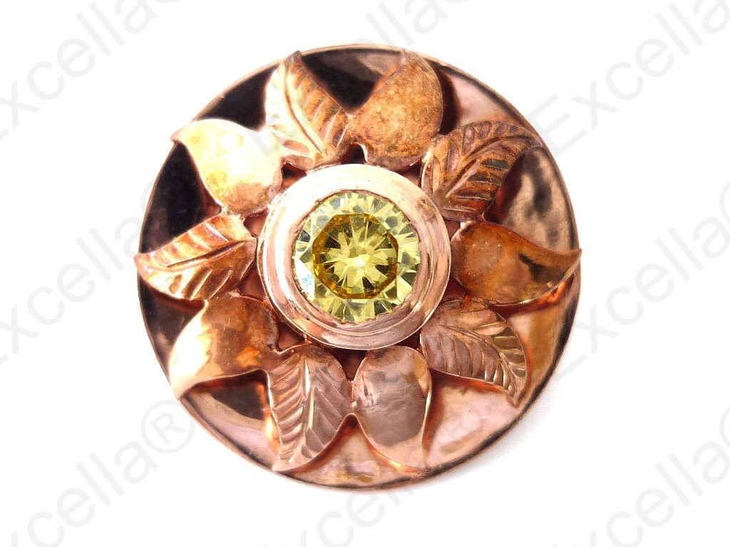 Handcrafted, embossed, sun shaped 925 romantic brown pendant, fitted with an exclusive sparkling yellow stone and perfected with a warm golden finish. The cut outs allow the view onto the subjacent base plate of the pendant, catching the light with every move you make. A classic colour combination. Diameter: 3.0 cm
