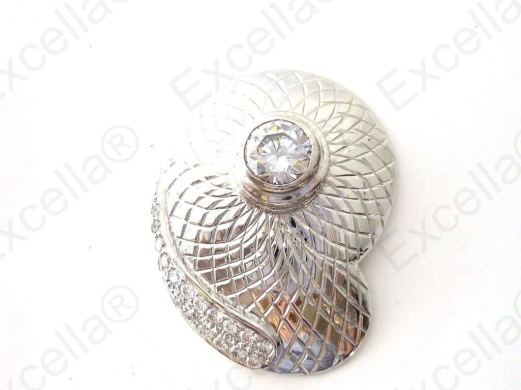 This is the beautiful, handcrafted pendant of 925 silver with an embossed chequered finish, fitted with a brilliant white stone and enhanced with a curve of sparkling stones. Its appearance can be changed completely by exchanging the stone with another one from our range. A true eye catcher due to its unique design. Measurements: 3.4 x 2.5 cm