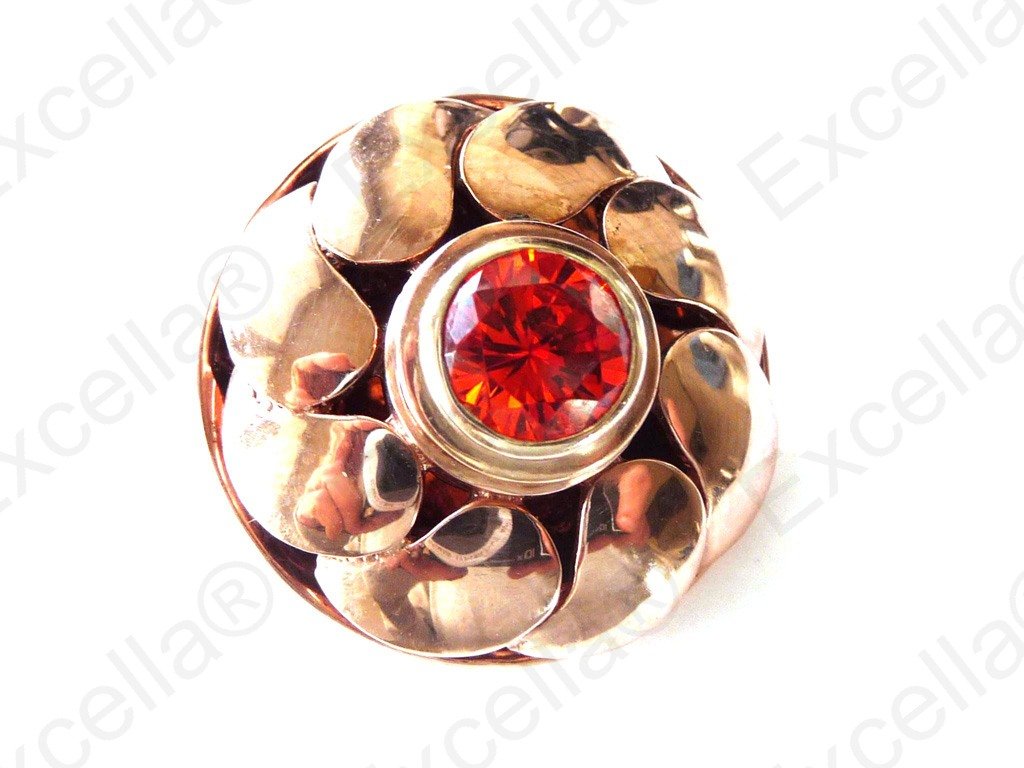 With an overall diameter span of 2.5 cm, this extensively beautiful flower shaped work-of-art pendant is just what you desire to enhance your eyes. Set with a large brilliant red stone this pendant can be worn upside down. Handcrafted from 925 silver with a warm romantic brown finish.