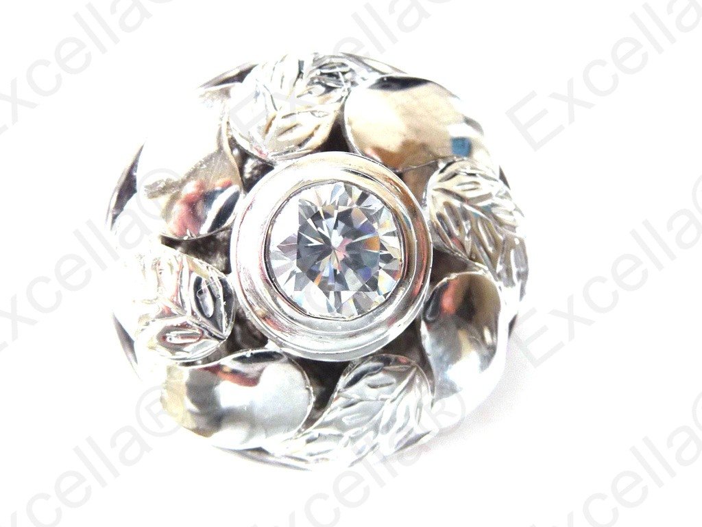 Set with an exquisite white stone in the centre of this beautiful flower shaped, embossed and handcrafted pendant this makes it simply the perfect companion for your neck - as with a diameter of 2.5 cm and fashioned from 925 silver - such a pendant is perfect for you as the various parts of this pendant can be interchanged with other pieces of the same range.