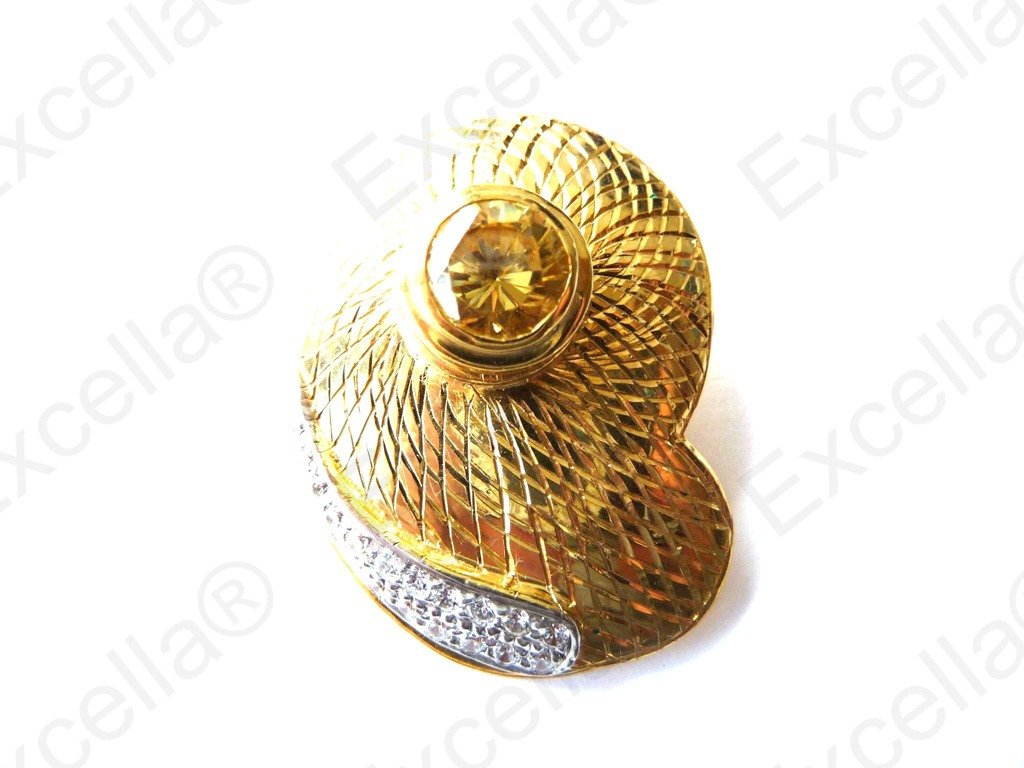 This is the beautiful, handcrafted pendant of 925 silver with an embossed warm golden finish, fitted with a brilliant yellow stone and enhanced with a curve of sparkling stones. Its appearance can be changed completely by exchanging the stone with another one from our range. Reflects each and every ray of light surrounding you. Measurements: 3.4 x 2.5 cm