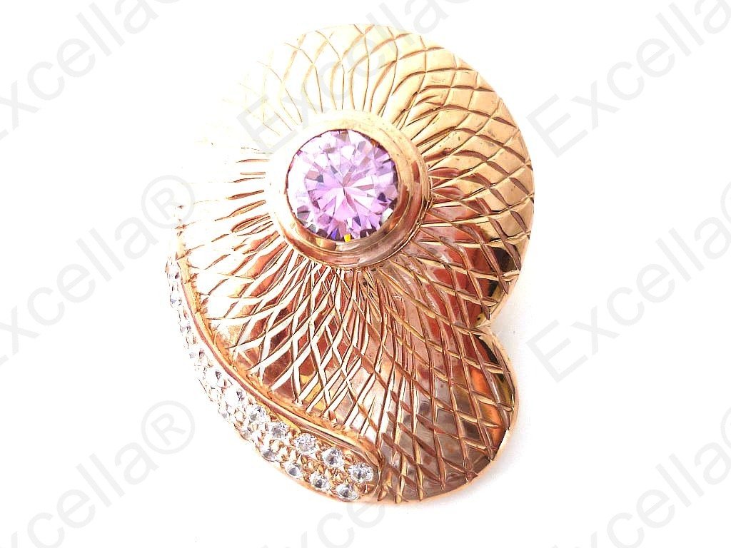 This is the beautiful, handcrafted pendant of 925 romantic brown with an embossed warm golden finish, fitted with a brilliant pink stone and enhanced with a curve of sparkling stones. Its appearance can be changed completely by exchanging the stone with another one from our range. Reflects each and every ray of light surrounding you. Measurements: 3.4 x 2.5 cm