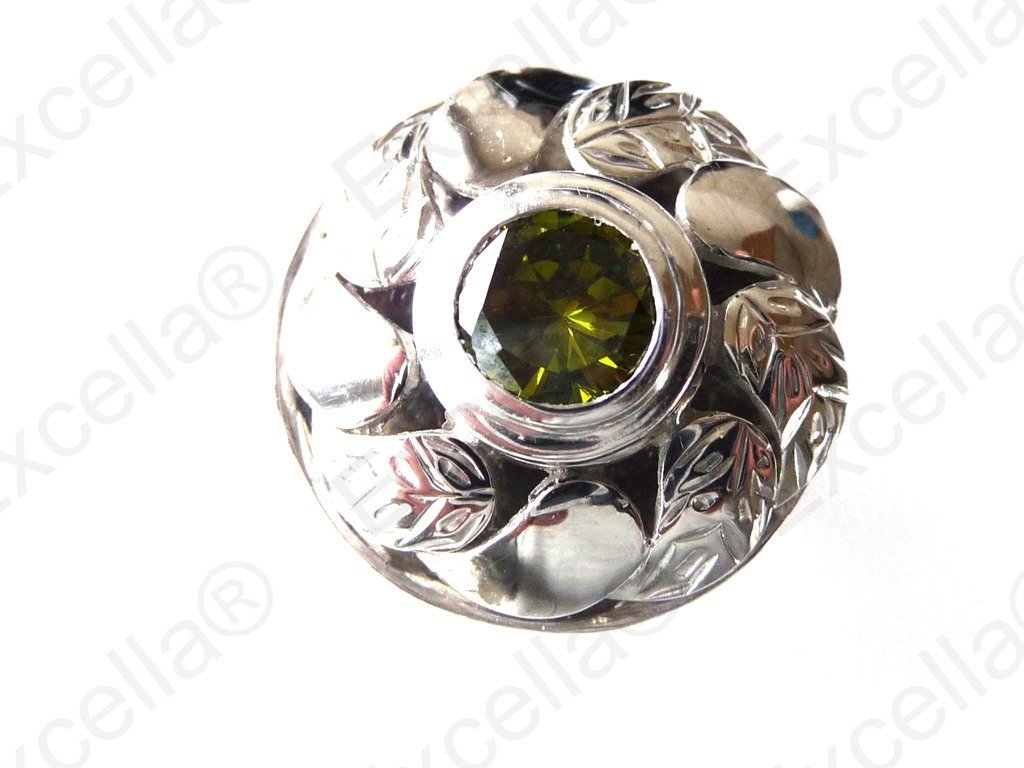 Set with an exquisite green stone in the centre of this beautiful flower shaped, embossed and handcrafted pendant this makes it simply the perfect companion for your neck - as with a diameter of 2.5 cm and fashioned from 925 silver - such a pendant is perfect for you as the various parts of this pendant can be interchanged with other pieces of the same range.