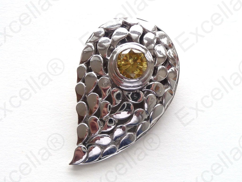 Paisley shaped 925 silver pendants fitted with an exquisite sparkling yellow stone. Exclusive design reminiscent of lace work which allows a view of subjacent pendant base. Length 4 cm, width 2.5 cm