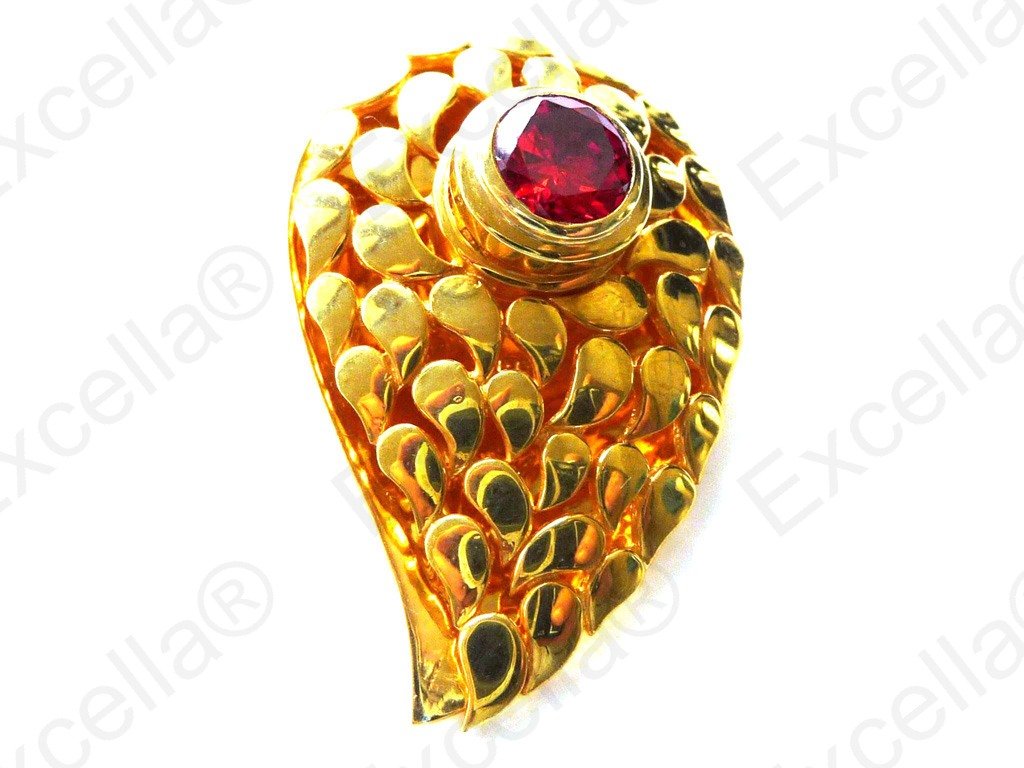 Crafted from 925 silver in gold finish, this is a beautiful pendant that is just right for your needs. It is fitted with a red stone that can be interchanged to meet your needs and desires. This paisley is simply perfect due to its deep cuts.