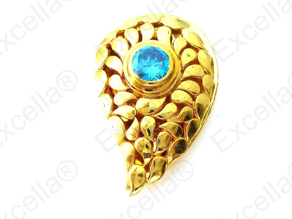 Crafted from 925 silver in gold finish, this is a beautiful pendant that is just right for your needs. It is fitted with a blue stone that can be interchanged to meet your needs and desires. This paisley is simply perfect due to its deep cuts.