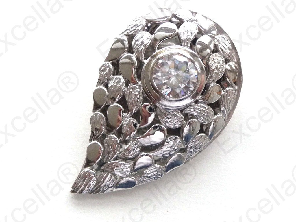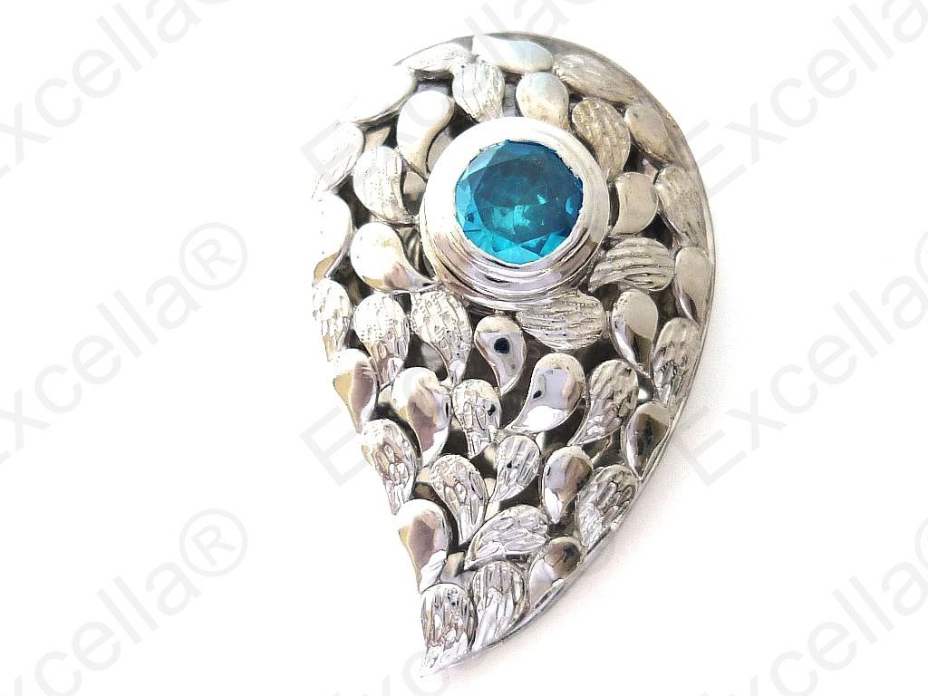 Handmade, paisley shaped 925 silver embossed pendant fitted with an exquisite sparkling yellow stone. Exclusive design reminiscent of lace work which allows a view of subjacent pendant base. A true eye catcher which works best on a plain coloured background. Length 4 cm, width 2.5 cm