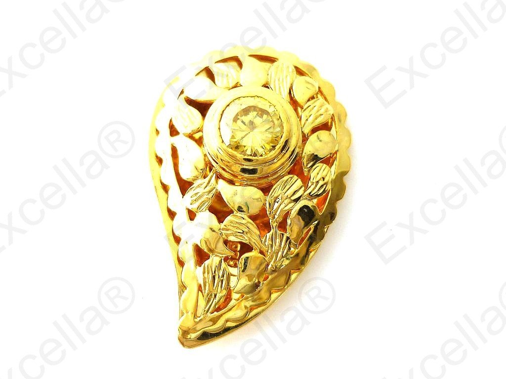 Precious paisley shaped, embossed ring with surrounding border in 925 silver, plated in a golden hue and handcrafted and fitted with a brilliant yellow stone. Spaces left between base and upper part allow for a delicate play of light and shade. It has been crafted with particular attention to the smallest details. Length 3.50 cm, width: 2.30 cm