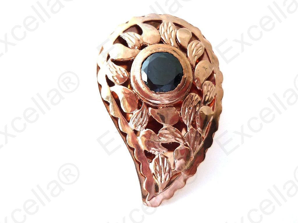 Precious paisley shaped, embossed ring with surrounding border in 925 romantic brown plated in a golden hue and handcrafted and fitted with a brilliant black stone. Spaces left between base and upper part allow for a delicate play of light and shade. It has been crafted with particular attention to the smallest details. Length 3.50 cm, width: 2.30 cm