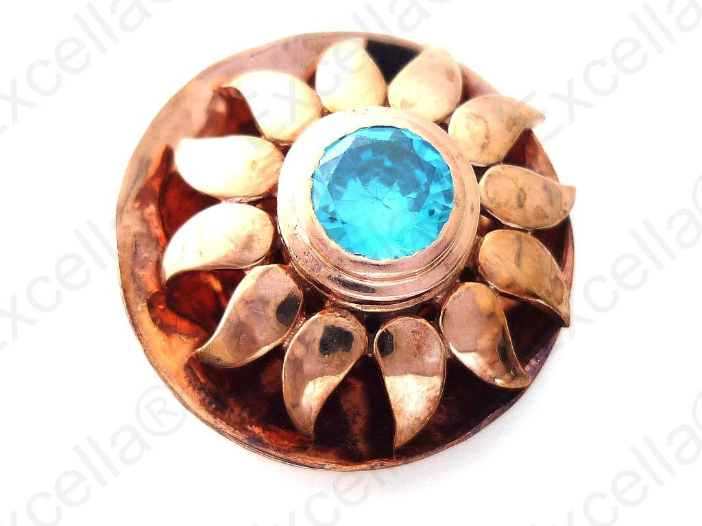 Fascinating sun shaped ring in 925 silver with a golden hue, handcrafted and fitted with a brilliant blue stone. Spaces left between base and upper part allow for a delicate play of light and shade. Diameter: 2.50 cm