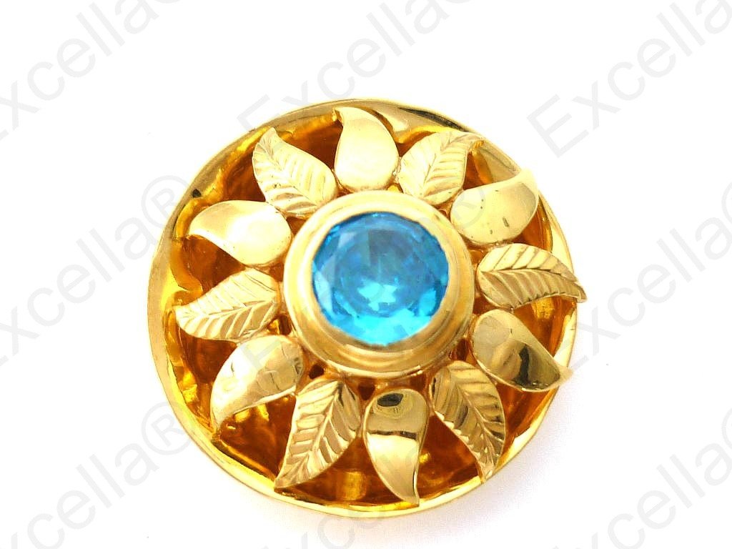 Fascinating sun shaped, embossed ring in 925 silver with a golden hue, handcrafted and fitted with a brilliant blue stone. Spaces left between base and upper part allow for a delicate play of light and shade. Diameter: 2.50 cm