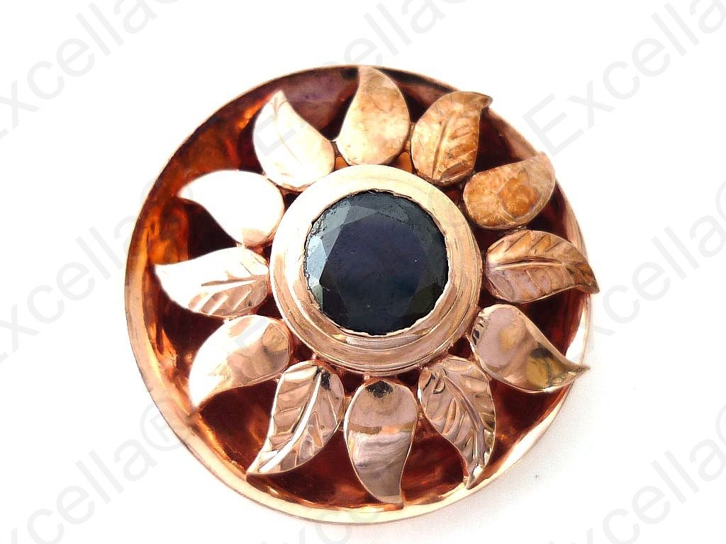 Fascinating sun shaped, embossed ring in 925 romantic brown with a golden hue, handcrafted and fitted with a brilliant black stone. Spaces left between base and upper part allow for a delicate play of light and shade. Diameter: 2.50 cm