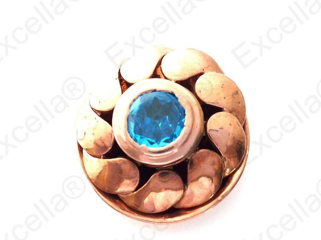 This smooth flower shaped ring has been handcrafted in 925 silver, finished with a romantic brown hue and fitted with a brilliant blue stone.