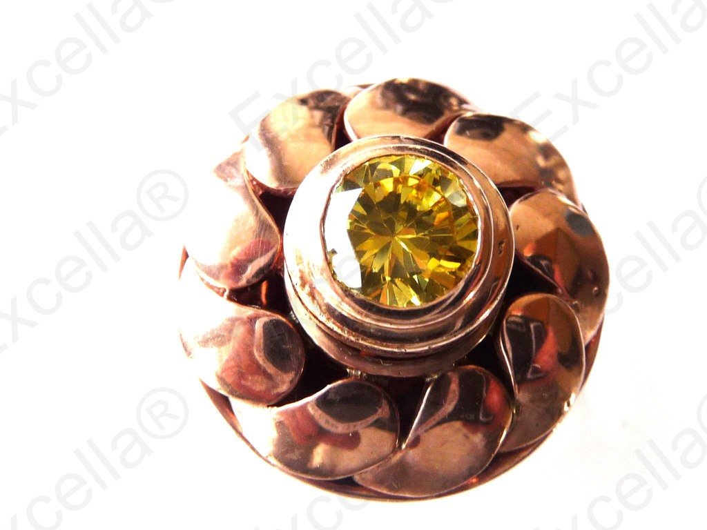 This smooth flower shaped ring has been handcrafted in 925 silver, finished with a romantic brown hue and fitted with a brilliant yellow stone.