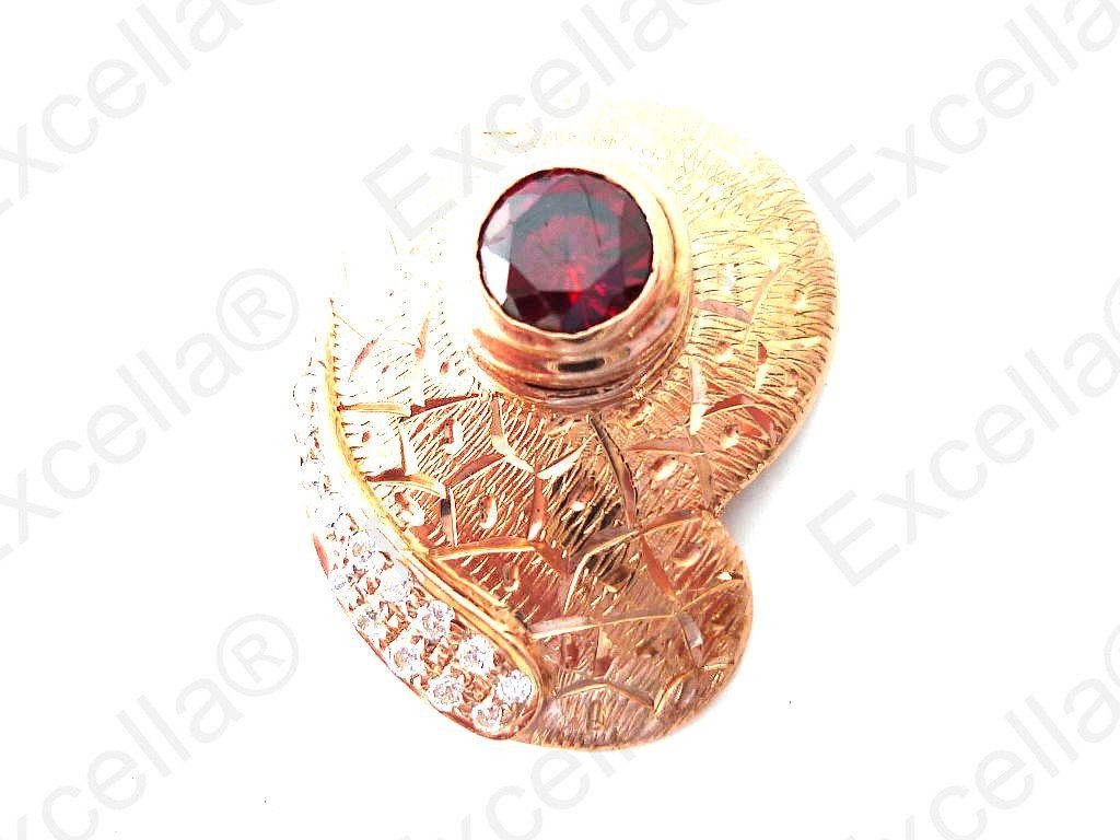 This is the ring from our beautiful, handcrafted collection made of 925 embossed romantic brown in a criss-cross pattern, enhanced by the sparkling curve. It has been fitted with a radiant red stone. A true eye catcher due to its unique design and a perfect match for your hand. Measurements: 3 x 2.3 cm