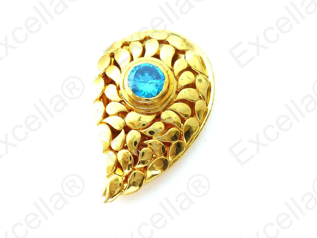 Elegant paisley shaped ring in 925 silver with a gold hue, handcrafted and fitted with a brilliant blue stone. The stark graphic impact makes it a real show stopper. This is truly elegant. Spaces left between base and upper part allow for a delicate play of light and shade. Length 3.60 cm, width 2.30 cm