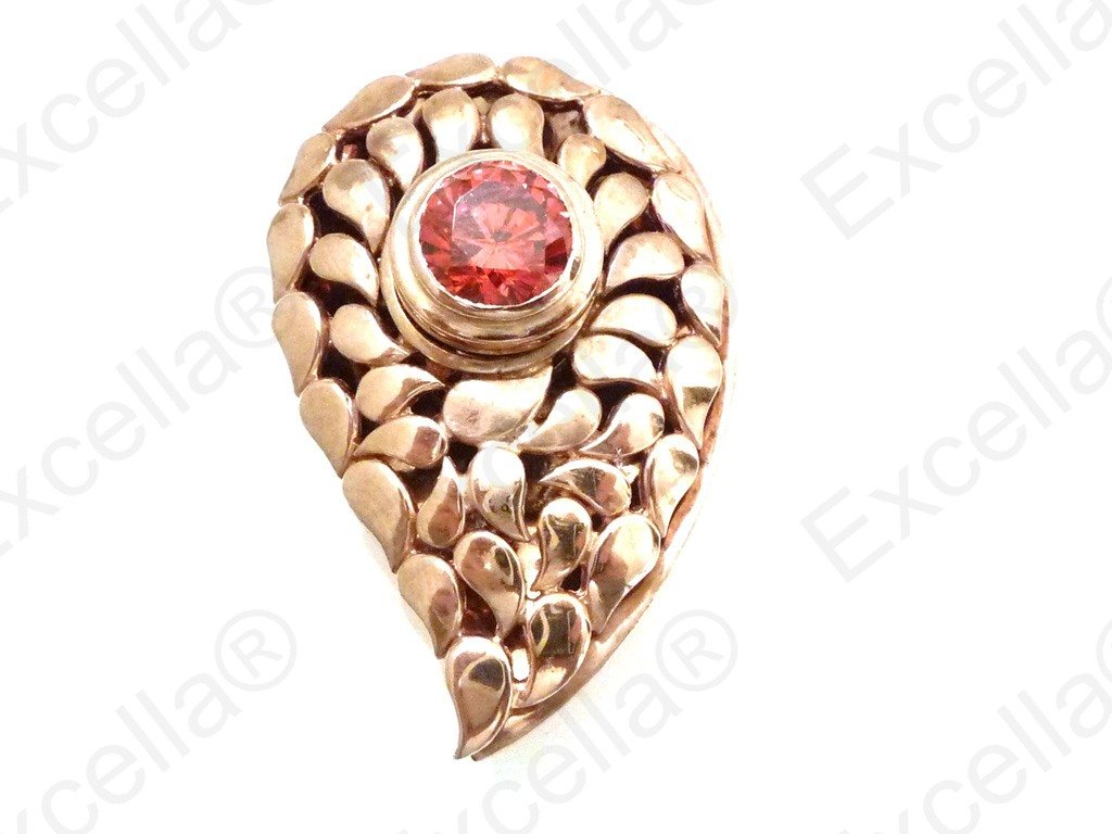 Elegant paisley shaped ring in 925 silver with a romantic brown hue, handcrafted and fitted with a brilliant red stone. The unusual colour combination guarantees a head turner. Spaces left between base and upper part allow for a delicate play of light and shade. Length 3.60 cm, width 2.30 cm