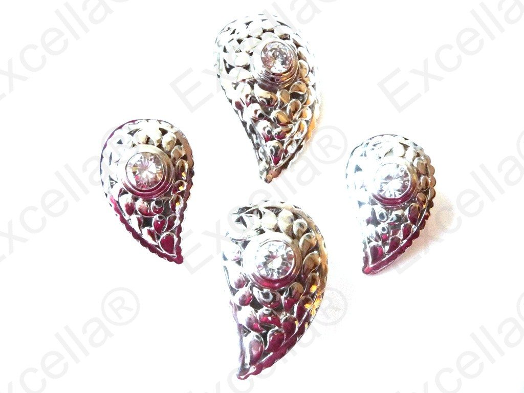 Our paisley shaped, bordered handcrafted set of 925 silver combined with a white stone. Perfect in combination but also great when just it's single pieces are worn. 2 earrings of 3 cm length and 1.9 cm width, 1 pendant of 4 cm length and 2.5 cm width, 1 ring of 3.6 cm length and 2.3 cm width