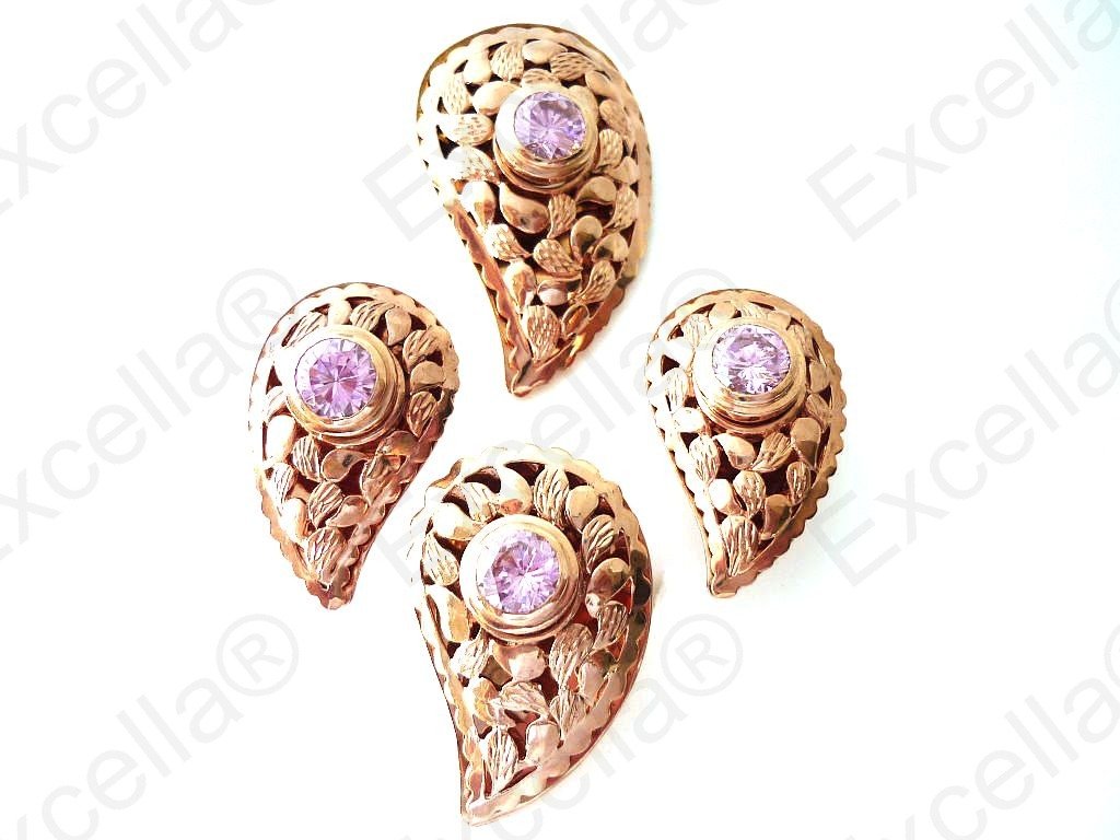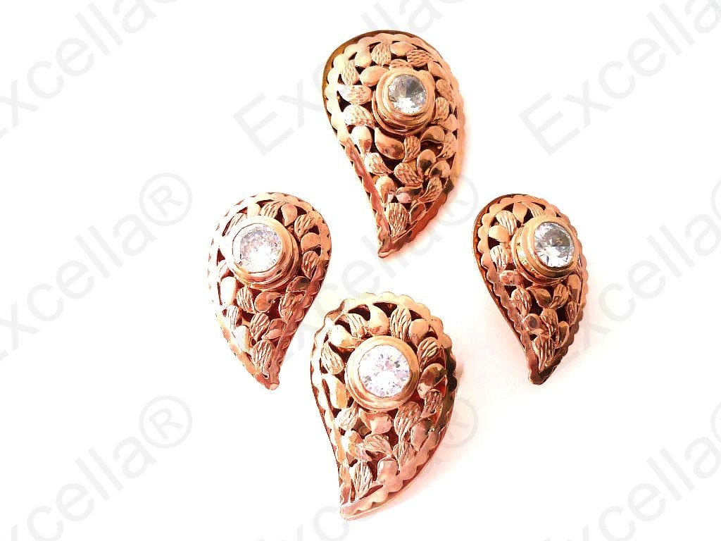 Our paisley shaped, bordered handcrafted set of 925 romantic brown with an embossed rich gold finish, combined with a white stone. Perfect in combination but also great when just it's single pieces are worn. 2 earrings of 3 cm length and 1.9 cm width, 1 pendant of 4 cm length and 2.5 cm width, 1 ring of 3.6 cm length and 2.3 cm width