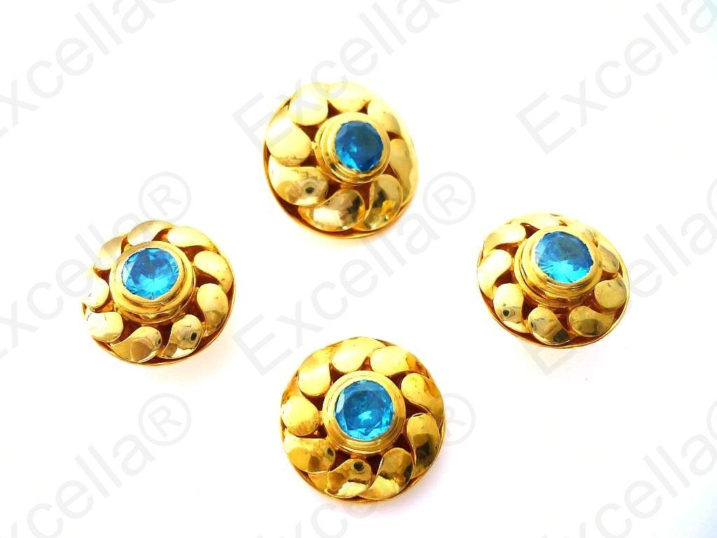 Our flower shaped, handcrafted set of gold plated 925 silver with a blue stone: 2 earrings of 1.9 cm diameter, 1 pendant of 2.5 cm diameter, 1 ring of 2.2 cm diameter