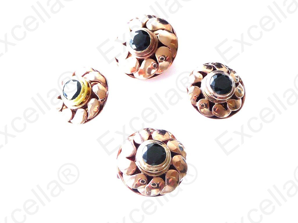 Our flower shaped, handcrafted set of 925 silver with a brilliant white stone and a romantic brown finish: 2 earrings of 1.9 cm diameter, 1 pendant of 2.5 cm diameter, 1 ring of 2.2 cm diameter