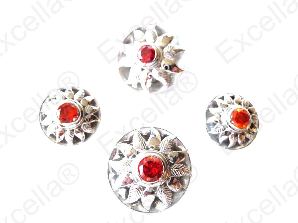 This beautiful and intrinsically handcrafted set with a 925 embossed silver sun shaped casing with a red stone set in the centre makes for a perfect combination. 2 earrings of 2.1 cm diameter each, 1 pendant of 3 cm diameter, 1 ring of 2.5 cm diameter