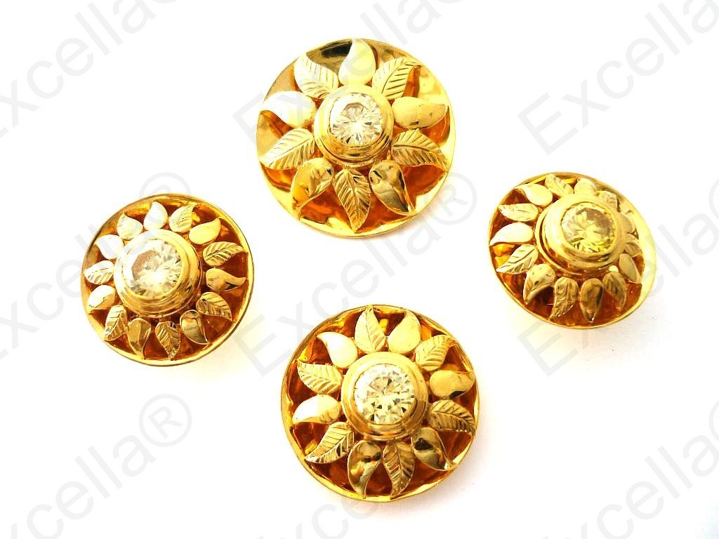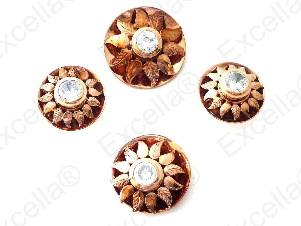This beautiful and intrinsically handcrafted, embossed set with a 925 romantic brown sun shaped casing with a warm gold finish and a white stone set in the centre makes for a perfect combination. 2 earrings of 2.1 cm diameter each, 1 pendant of 3 cm diameter, 1 ring of 2.5 cm diameter