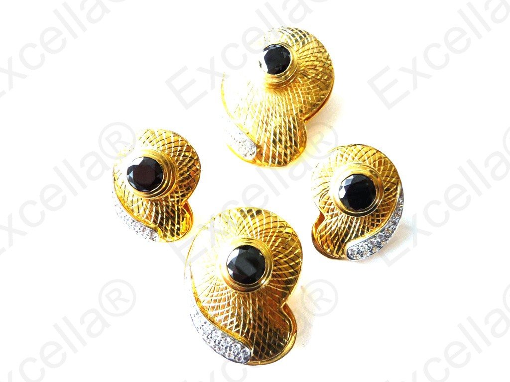 This beautiful and intrinsically handcrafted set with a 925 silver sun shaped casing and a bright white stone set in the centre makes for a perfect combination. 2 earrings of 2.1 cm diameter each, 1 pendant of 3 cm diameter, 1 ring of 2.5 cm diameter