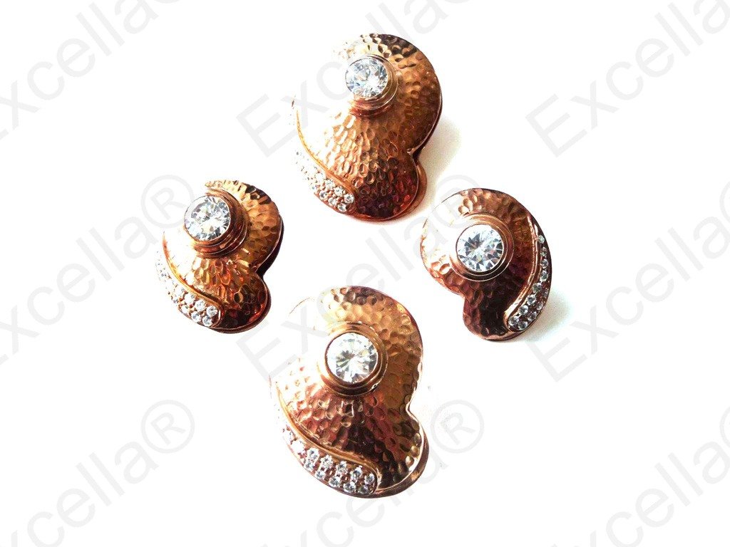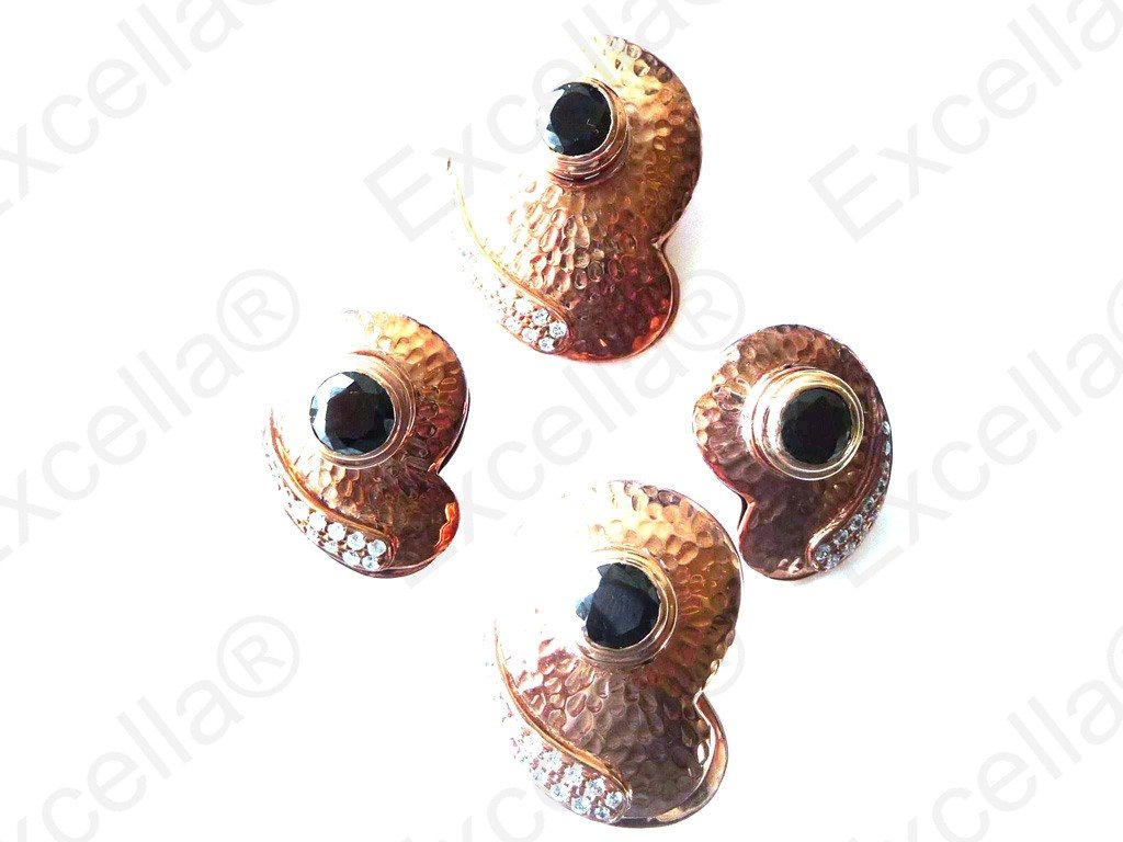 This is the complete set of a beautiful, handcrafted collection made of 925 embossed silver with a romantic brown finish. Each of these items is fitted with a white stone. The various pieces of this set can be interchanged in such a manner that you can create your very own masterpiece. A focal point whether worn as set or as single piece. Pendant: 3.4 x 2.5 cm, Ring: 3 x 2.3 cm, Earrings: 2.5 x 1.8 cm