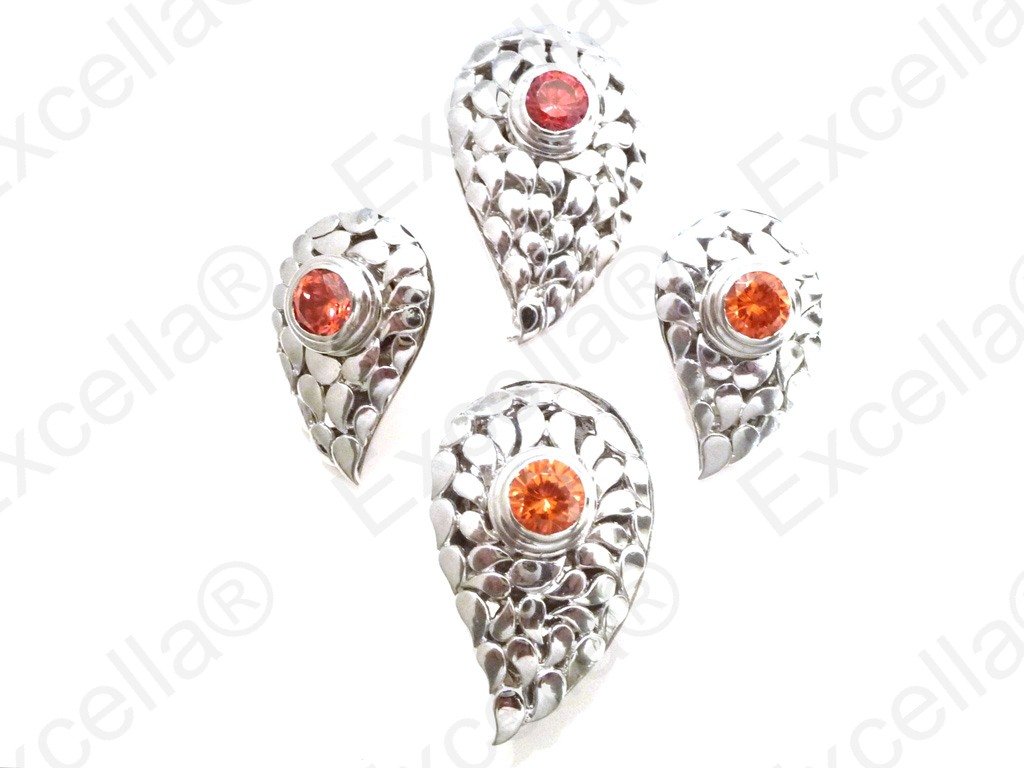 Our paisley shaped, handcrafted set of 925 silver with a red stone. Perfect in combination but also great when just it's single items are worn. 2 earrings of 3 cm length and 1.9 cm width, 1 pendant of 4 cm length and 2.5 cm width, 1 ring of 3.6 cm length and 2.3 cm width