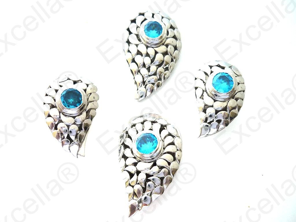 Our paisley shaped, handcrafted set of 925 silver with a white stone. Perfect in combination but also great when just it's single items are worn. 2 earrings of 3 cm length and 1.9 cm width, 1 pendant of 4 cm length and 2.5 cm width, 1 ring of 3.6 cm length and 2.3 cm width