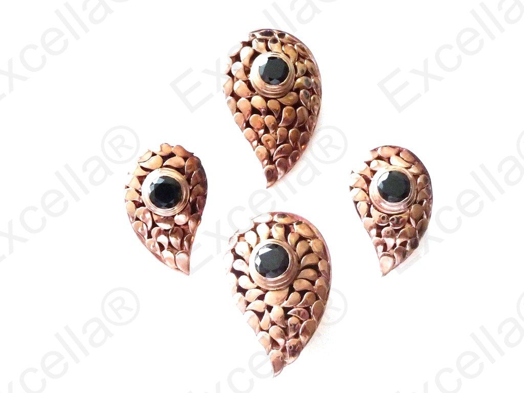 Our paisley shaped, handcrafted set of 925 silver with a romantic brown finish and a jet black stone. Perfect in combination but also great when just it's single items are worn. 2 earrings of 3 cm length and 1.9 cm width, 1 pendant of 4 cm length and 2.5 cm width, 1 ring of 3.6 cm length and 2.3 cm width