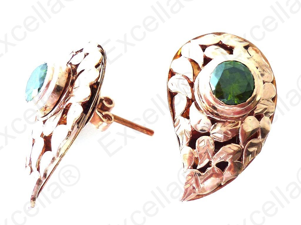 An exquisite earring set that is embossed with romantic brown and studded with an eloquent pink stone to give it its exotic appeal. Handcrafted to perfection.