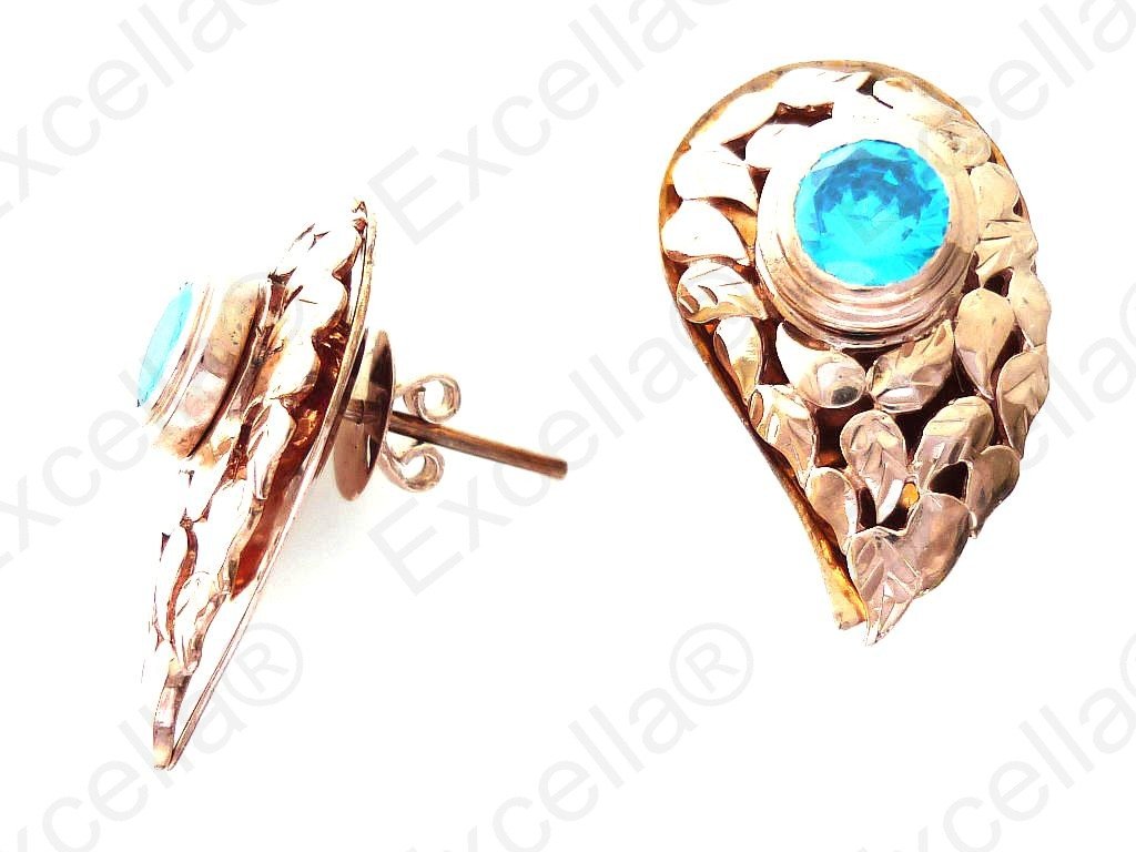 An exquisite earring set that is embossed with romantic brown and studded with an eloquent blue stone to give it its exotic appeal. Handcrafted to perfection.