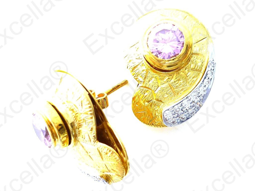 This is the earring set from a beautiful, handcrafted collection made of 925 bright gold with an embossed criss-cross finish and a shimmering outline. Each earring is fitted with a brilliant yellow stone. The various pieces of this set can be interchanged in such a manner that you create your very own masterpiece. A true eye catcher due to its unique design. Measurements: 2.5 x 1.8 cm