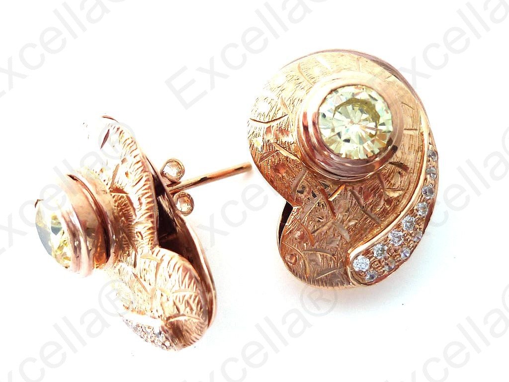 This is the earring set from a beautiful, handcrafted collection made of 925 romantic brown with an embossed criss-cross finish and a shimmering outline. Each earring is fitted with a brilliant yellow stone. The various pieces of this set can be interchanged in such a manner that you create your very own masterpiece. A true eye catcher due to its unique design. Measurements: 2.5 x 1.8 cm