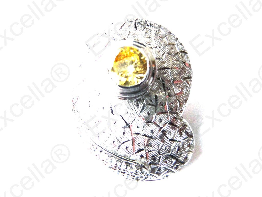This is the beautiful, handcrafted pendant of 925 silver with an embossed criss-cross finish, fitted with a brilliant yellow stone and enhanced with a curve of sparkling stones. Its appearance can be changed completely by exchanging the stone with another one from our range. A true eye catcher due to its unique design. Measurements: 3.4 x 2.5 cm