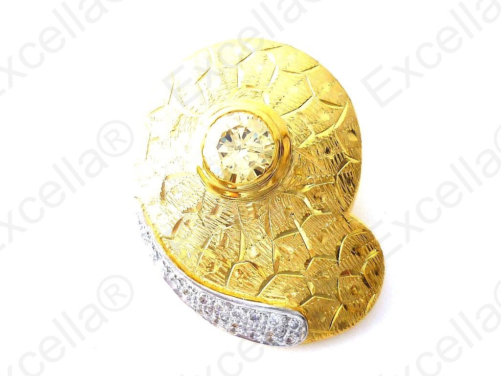 This is the beautiful, handcrafted pendant of 925 bright gold with an embossed criss-cross finish, fitted with a brilliant white stone and enhanced with a curve of sparkling stones. Its appearance can be changed completely by exchanging the stone with another one from our range. A true eye catcher due to its unique design. Measurements: 3.4 x 2.5 cm