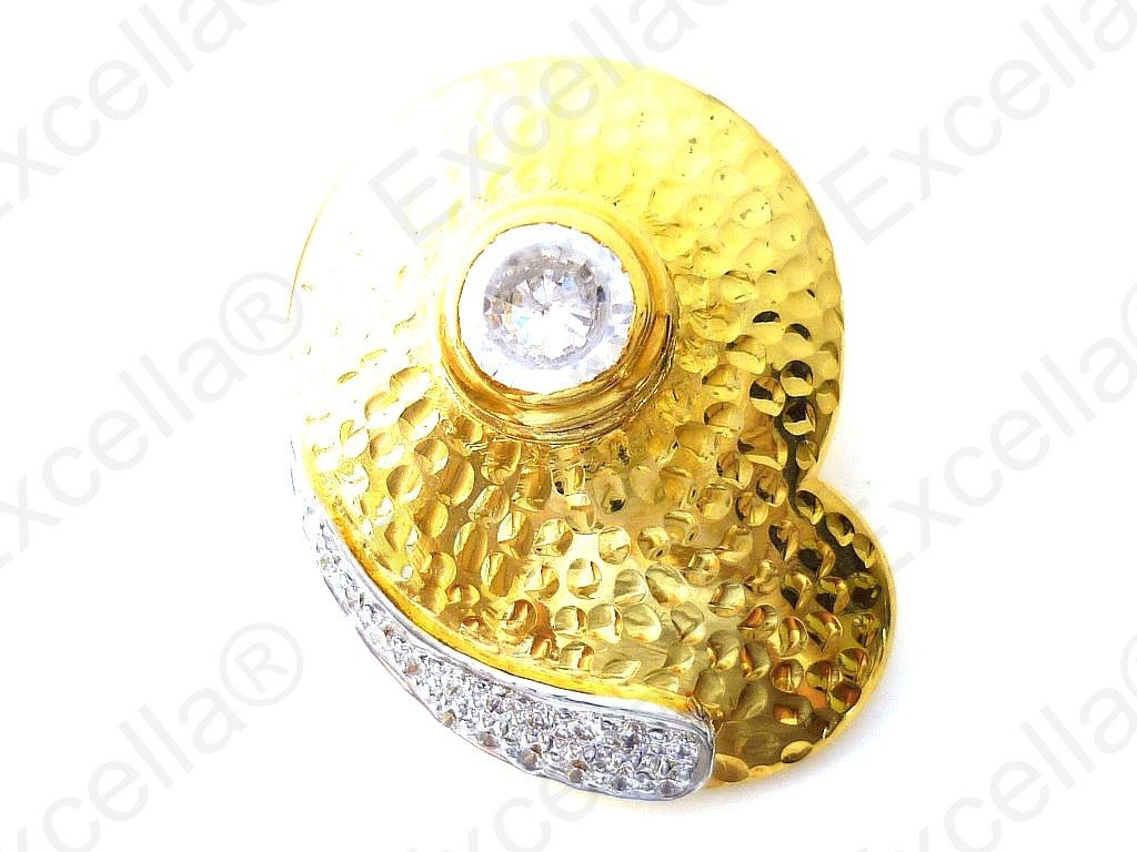 This is the beautiful, handcrafted pendant of 925 silver with an embossed bright gold finish, fitted with a brilliant black white which radiates light and enhanced with a curve of sparkling stones. Its appearance can be changed completely by exchanging the stone with another one from our range. An unusual design sure to turn heads. Measurements: 3.4 x 2.5 cm