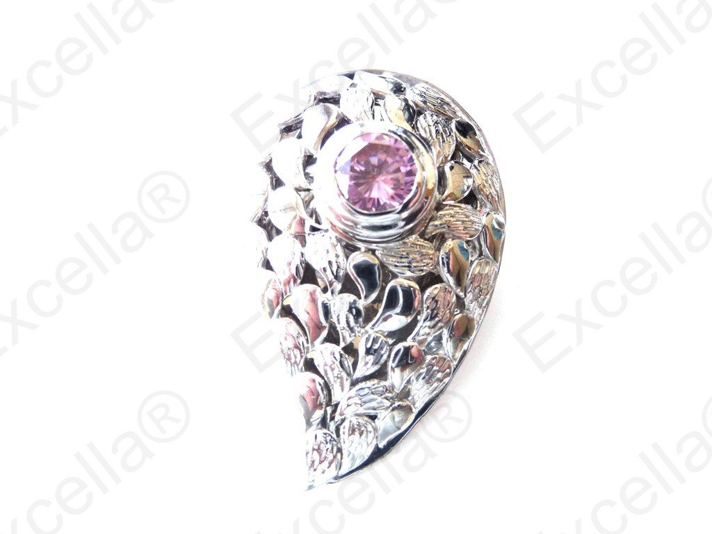 Handmade, paisley shaped 925 silver embossed pendant fitted with an exquisite sparkling yellow stone. Exclusive design reminiscent of lace work which allows a view of subjacent pendant base. A true eye catcher which works best on a plain coloured background. Length 4 cm, width 2.5 cm