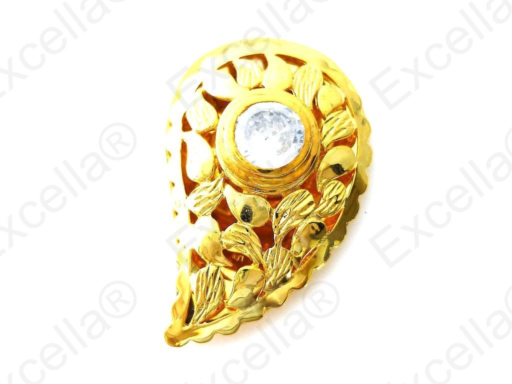 Precious paisley shaped, embossed ring with surrounding border in 925 silver, plated in a golden hue and handcrafted and fitted with a brilliant white stone. Spaces left between base and upper part allow for a delicate play of light and shade. It has been crafted with particular attention to the smallest details. Length 3.50 cm, width: 2.30 cm