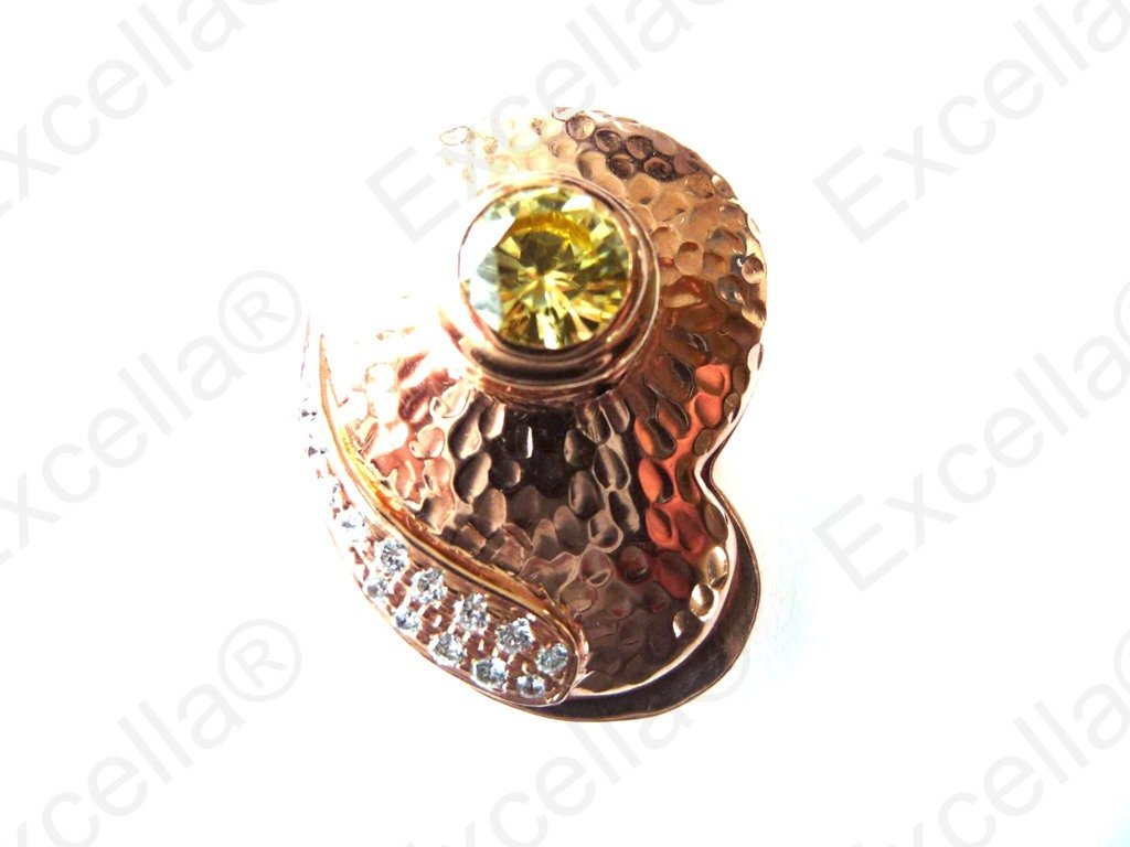 This is the ring from our beautiful, handcrafted collection made of 925 embossed silver in a hammered pattern, enhanced by its romantic brown hue and the sparkling curve. It has been fitted with a radiant yellow stone. A true eye catcher due to its unique design and a perfect match for your hand. Measurements: 3 x 2.3 cm