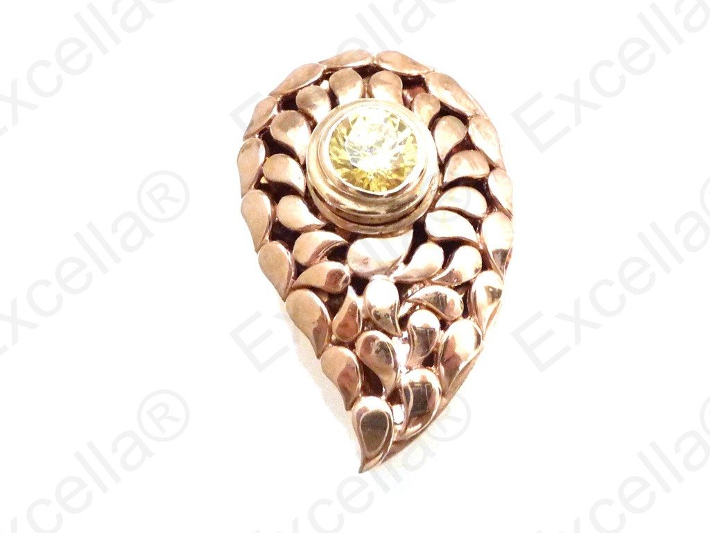 Elegant paisley shaped ring in 925 silver with a romantic brown hue, handcrafted and fitted with a brilliant yellow stone. The unusual colour combination guarantees a head turner. Spaces left between base and upper part allow for a delicate play of light and shade. Length 3.60 cm, width 2.30 cm